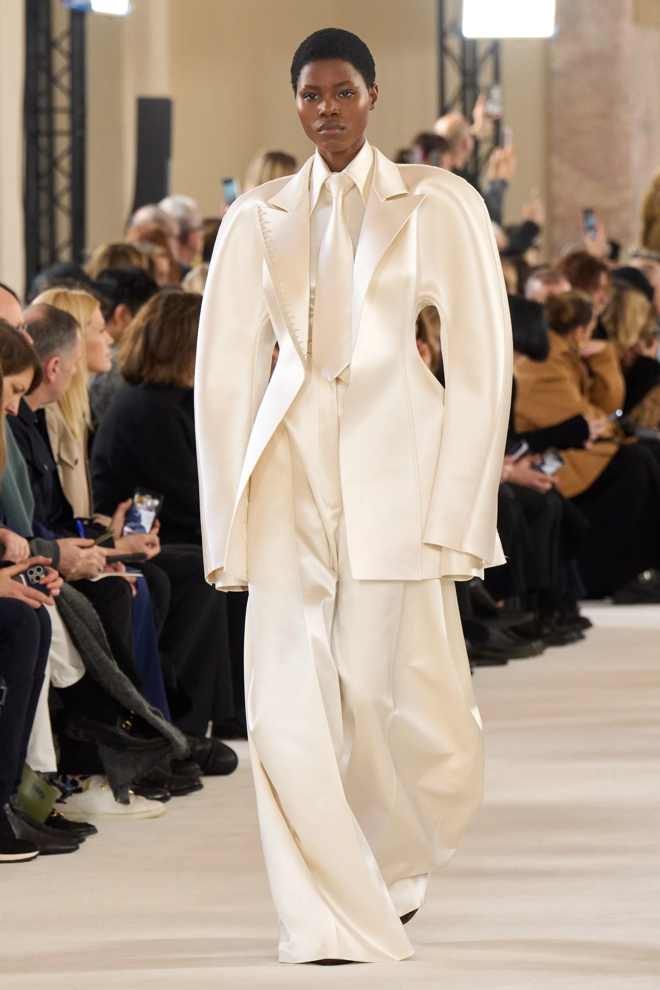 Look 15 of this runway was effortlessly seamless, yet taking a closer look, a white pencil is purposefully weaved between the shirt collar, to perhaps acknowledge that Haute Couture exists as the only handmade bastion of fashion remaining. From an illustrative POV, the white collar is being held in shape by an object enabling creativity, smart. I mention 'white collar' with indeed, an awareness and reference to those bodies earning a monstrous salary, funny that, yet creativity involves getting your hands dirty every once in a while ... ha ha ha.